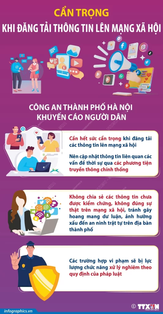 Công an thành phố Hà Nội khuyến cáo người dân cần hết sức cẩn trọng khi đăng tải các thông tin lên mạng xã hội. Người dân nên cập nhật thông tin liên quan các vấn đề thời sự qua các phương tiện truyền thông chính thống.