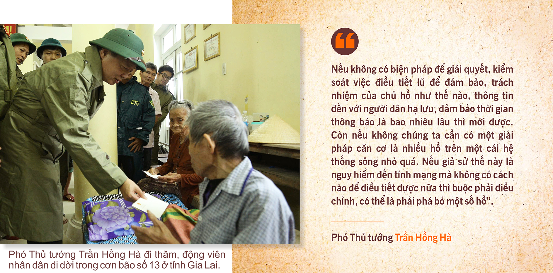 “Nếu không có biện pháp để giải quyết, kiểm soát việc điều tiết lũ để đảm bảo, trách nhiệm của chủ hồ như thế nào, thông tin đến với người dân hạ lưu, đảm bảo thời gian thông báo là bao nhiêu lâu thì mới được. Còn nếu không chúng ta cần có một giải pháp căn cơ là nhiều hồ trên một cái hệ thống sông nhỏ quá. Nếu giả sử thế này là nguy hiểm đến tính mạng mà không có cách nào để điều tiết được nữa thì buộc phải điều chỉnh, có thể là phải phá bỏ một số hồ”, Phó Thủ tướng Trần Hồng Hà chỉ rõ.