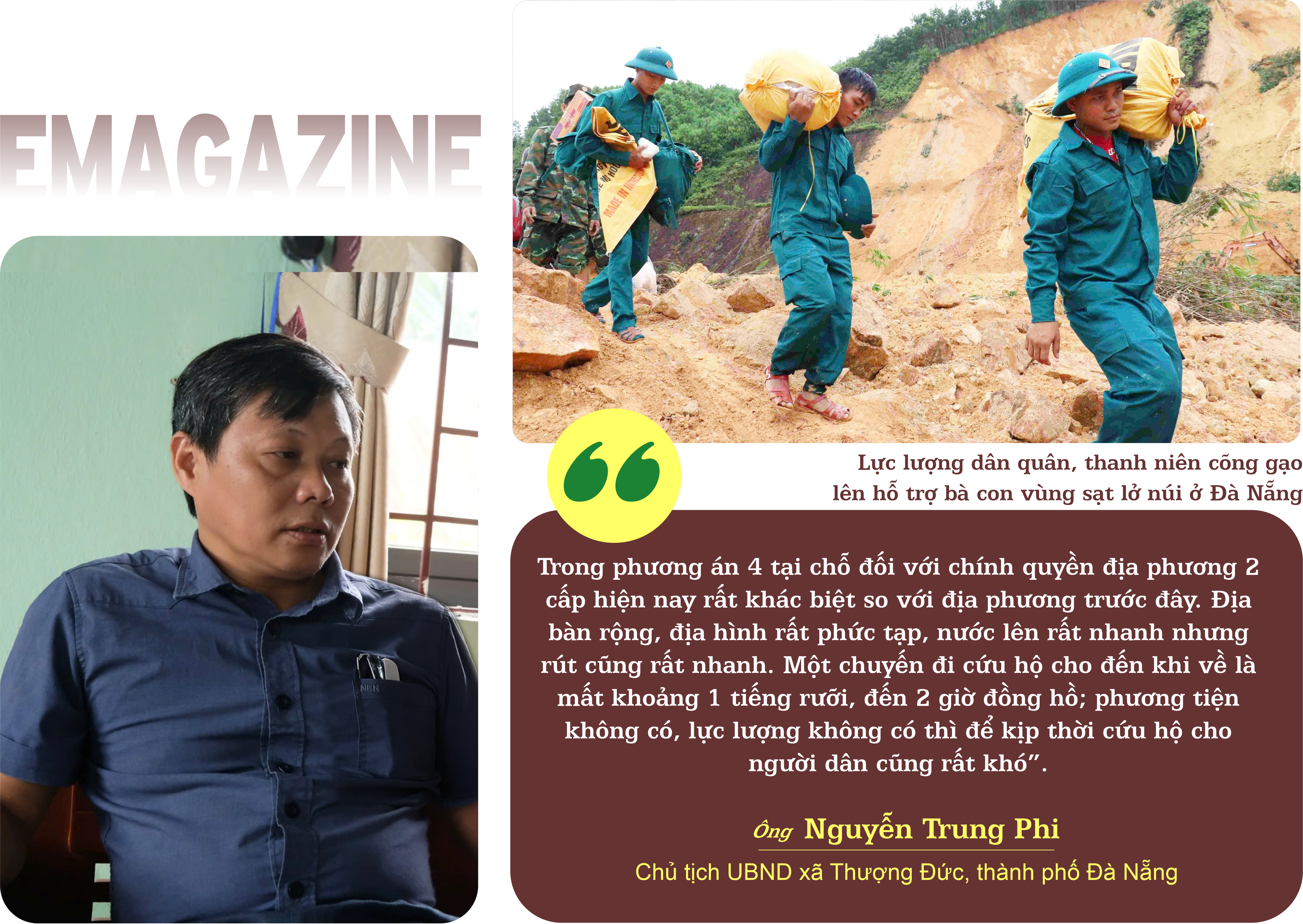 Các đợt mưa lũ cực đoan vừa qua, chính quyền cấp xã đóng vai trò là tuyến đầu và là nơi thực thi phương châm “4 tại chỗ” (gồm chỉ huy tại chỗ, lực lượng tại chỗ, vật tư tại chỗ và hậu cần tại chỗ). Đã hơn 1 tháng sau vụ sạt lở núi, người dân thôn A Tếêp, xã miền núi A Vương, thành phố Đà Nẵng vẫn không tin mình đã thoát nạn. Cả quả đồi trên cao đổ sập xuống, cả khu dân cư này bị vùi lấp và lũ bùn cuốn trôi. Trước khi tai họa ập đến, chính quyền xã đã kịp sơ tán 27 hộ dân với 320 người đến nơi khác trú ẩn an toàn.